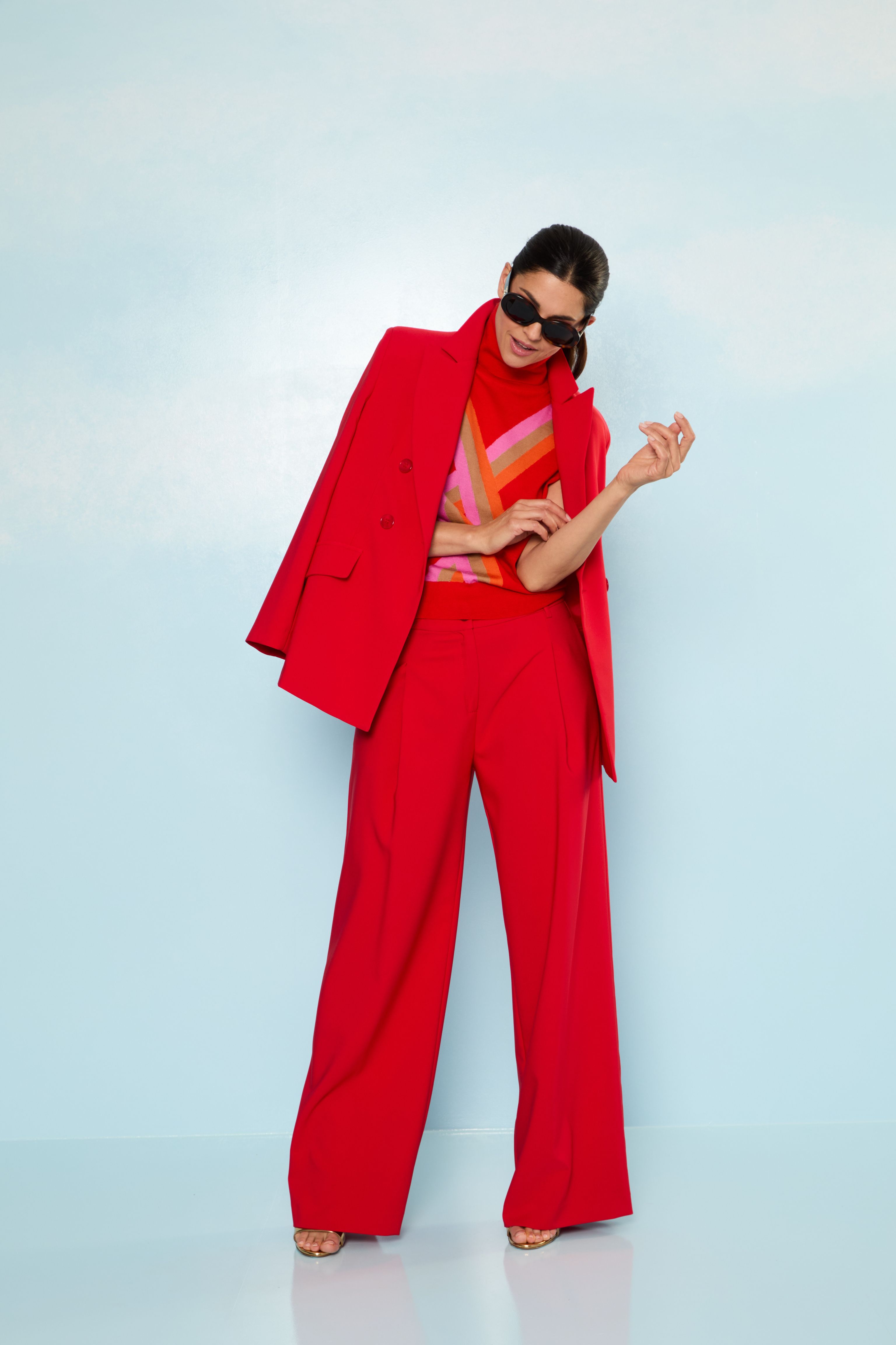 Kräftige Farben wie Rot und Rosa bringen Energie in klassische Anzug-Styles und schaffen einen modernen, selbstbewussten Auftritt. Fließende Stoffe und markante Details verleihen dem Outfit eine elegante Leichtigkeit.